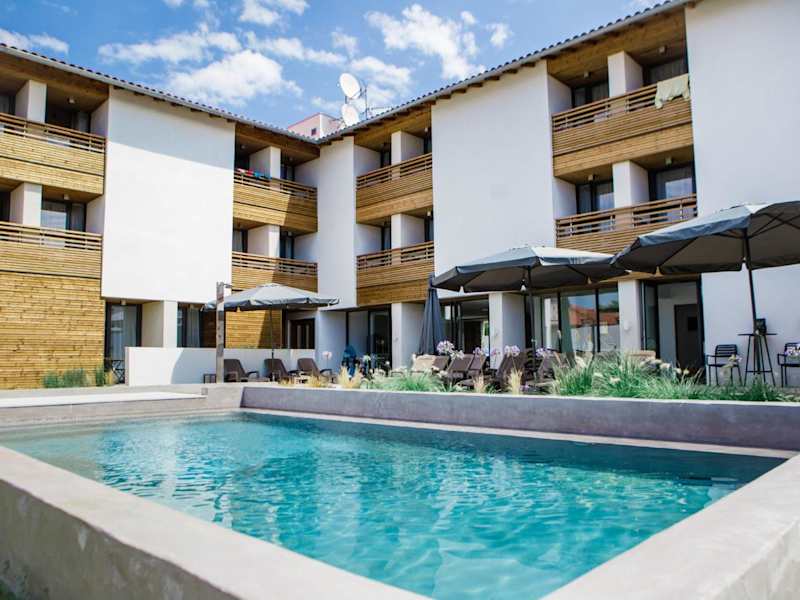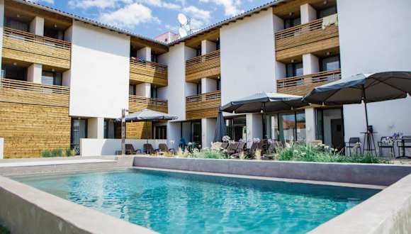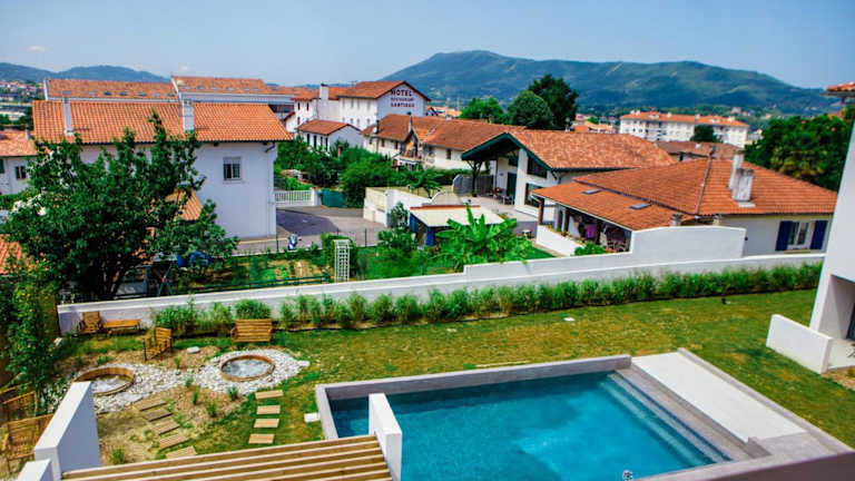 Das Hotel Restaurant Santiago in Hendaye ist der ideale Ort für einen entspannten Aufenthalt in der Nähe des Strandes. Mit einem Außenpool, einem Restaurant und kostenfreiem WLAN bietet das Hotel alle Annehmlichkeiten, die Sie für einen komfortablen Urlaub benötigen. Die klimatisierten Zimmer verfügen über einen Balkon und einen Wasserkocher, während das eigene Badezimmer mit einem Haartrockner und kostenfreien Pflegeprodukten ausgestattet ist. Genießen Sie den Blick auf die Berge und den Pool von Ihrem Zimmer aus. Das Hotel bietet auch einen Garten und eine 24-Stunden-Rezeption, sowie kostenlose Parkplätze und einen Ladeanschluss für Elektrofahrzeuge.