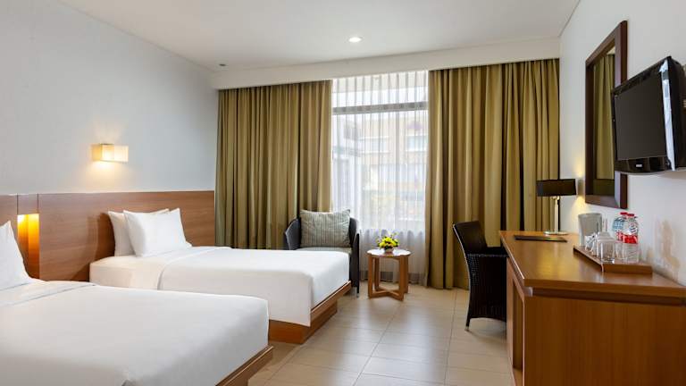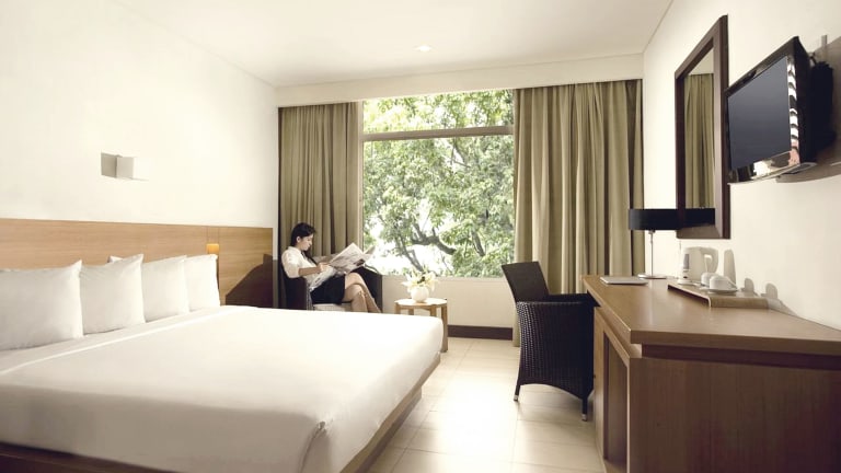 Die klimatisierten Zimmer im Hotel Santika Bandung bieten allen Komfort, den Gäste benötigen, um sich wie zu Hause zu fühlen. Jedes Zimmer verfügt über kostenfreies WLAN, einen Flachbild-Kabel-TV, einen Safe, einen Schreibtisch und Tee- und Kaffeezubehör. Das eigene Badezimmer ist mit einer Dusche ausgestattet und kostenlose Pflegeprodukte stehen zur Verfügung.