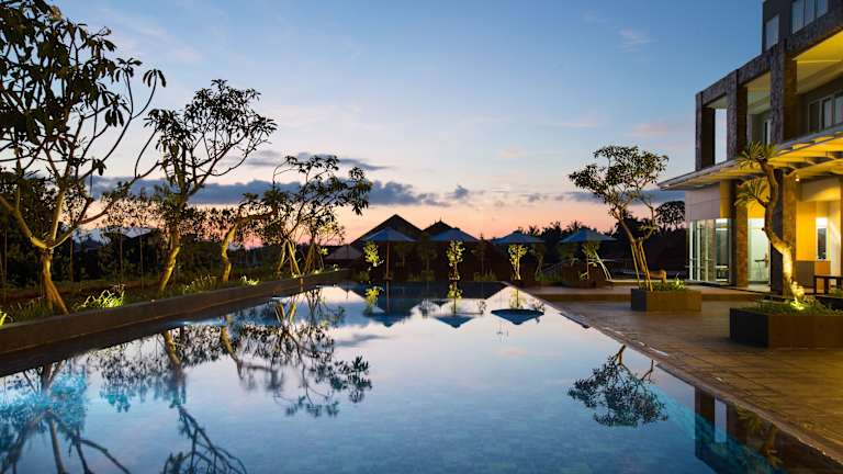 Das Hotel Santika Banyuwangi befindet sich nur 10 Fahrminuten vom Stadtzentrum von Banyuwangi entfernt. Von hier aus erreichen Sie in etwa 35 Fahrminuten den Hafen Ketapang und in etwa 1 Stunde den berühmten Vulkan Ijen. Der Flughafen Banyuwangi ist ebenfalls nur etwa 20 Autominuten entfernt. Die Lage des Hotels ist somit ideal, um die verschiedenen Sehenswürdigkeiten und Attraktionen der Region zu erkunden.