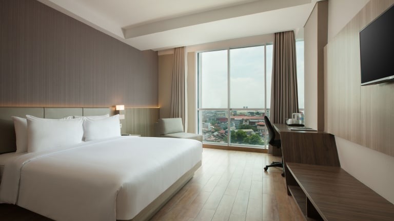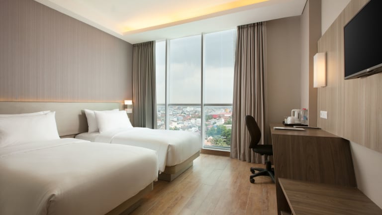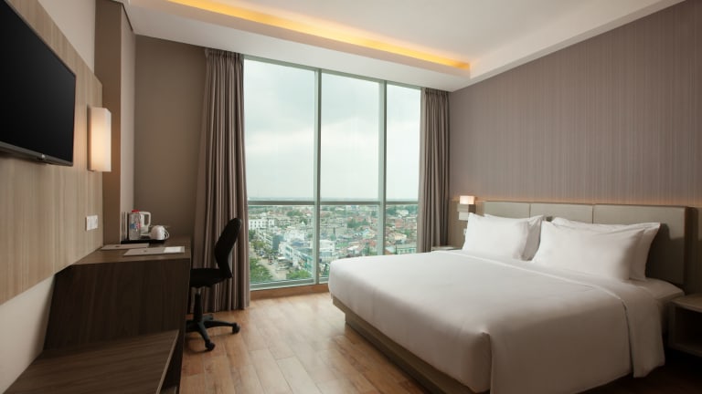 Das Hotel Santika Radial Palembang in Palembang bietet seinen Gästen eine ideale Lage im Zentrum der Stadt. Mit einem Außenpool, kostenfreien Privatparkplätzen und einem Fitnesscenter bietet das Hotel eine Vielzahl von Annehmlichkeiten für einen angenehmen Aufenthalt. Das freundliche Personal steht rund um die Uhr zur Verfügung und kostenfreies WLAN ist in der gesamten Unterkunft verfügbar. Genießen Sie ein asiatisches oder Halal-Frühstück und erkunden Sie die nahe gelegenen Sehenswürdigkeiten wie das Jakabaring Aquatic Stadium.