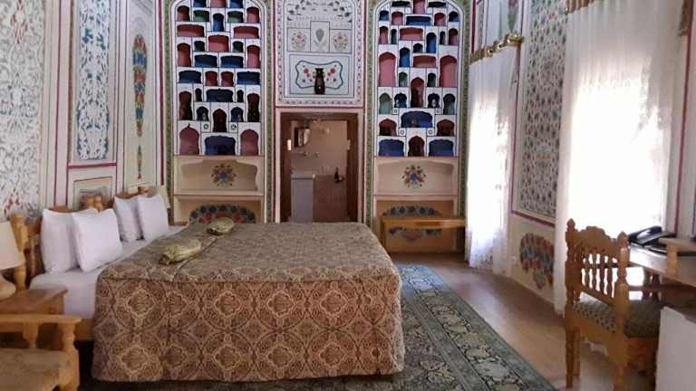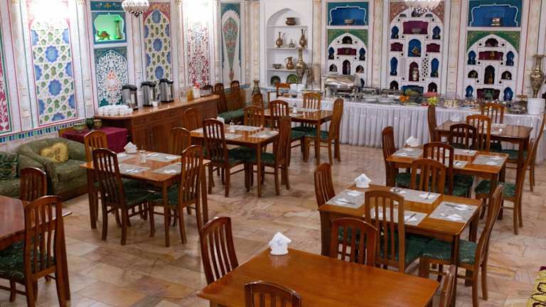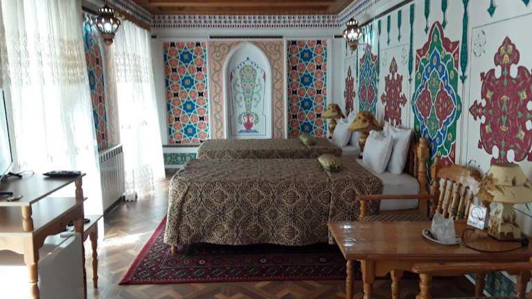 Das Sasha & Son Hotel in Buxoro bietet eine komfortable Unterkunft mit einem zuvorkommenden Service und einer charmanten Terrasse. Hier können Sie die Annehmlichkeiten wie den Conciergeservice, das Restaurant und das kostenfreie WLAN genießen. Die klimatisierten Zimmer sind stilvoll eingerichtet und verfügen über moderne Annehmlichkeiten. Das Hotel ist der ideale Ausgangspunkt, um die historische Stadt Buxoro zu erkunden.