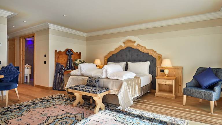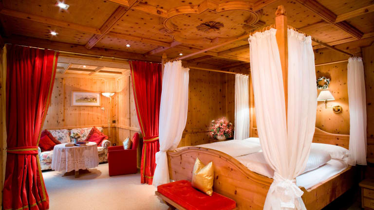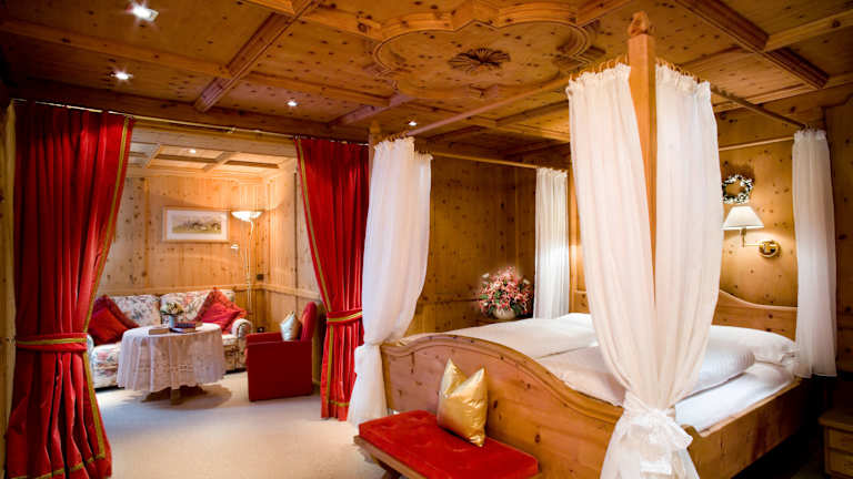 Die Zimmer im Sassongher sind geräumig und gut ausgestattet mit einer Minibar, einem LCD-Sat-TV und einem eigenen Bad mit Hausschuhen, Bademantel und Tasche für den Wellnessbereich. Die meisten Zimmer bieten auch einen Balkon mit einem atemberaubenden Blick auf die Berge oder das Tal.