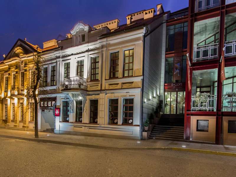 Das Hotel Šaulys in Šiauliai (Schaulen) bietet eine zentrale Lage, nur einen kurzen Spaziergang von der Fußgängerzone entfernt. Die Zimmer sind in warmen Farben gehalten und verfügen über kostenfreies WLAN, Sat-TV und eine Minibar. Entspannen Sie sich in der Sauna oder trainieren Sie im kostenlosen Fitnessraum. Das hoteleigene Restaurant serviert europäische Spezialitäten und bietet ein Frühstücksbuffet. Genießen Sie eine Massage oder eine Schönheitsanwendung nach einem ereignisreichen Tag. Der zentrale Busbahnhof ist zu Fuß in 5 Minuten erreichbar, der Bahnhof Šiauliai in 10 Minuten.