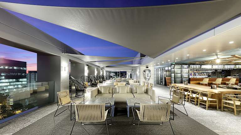 Die gastronomischen Einrichtungen umfassen ein Restaurant, ein Café und eine Bar, in denen mediterrane und Grill-/BBQ-Gerichte serviert werden. Auf Wunsch sind auch vegetarische, milchfreie und vegane Optionen erhältlich. Täglich wird ein Frühstücksbuffet angeboten.