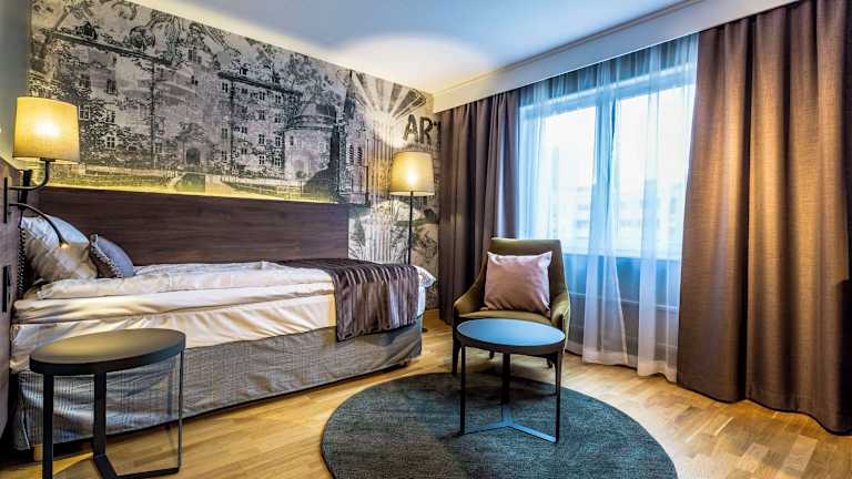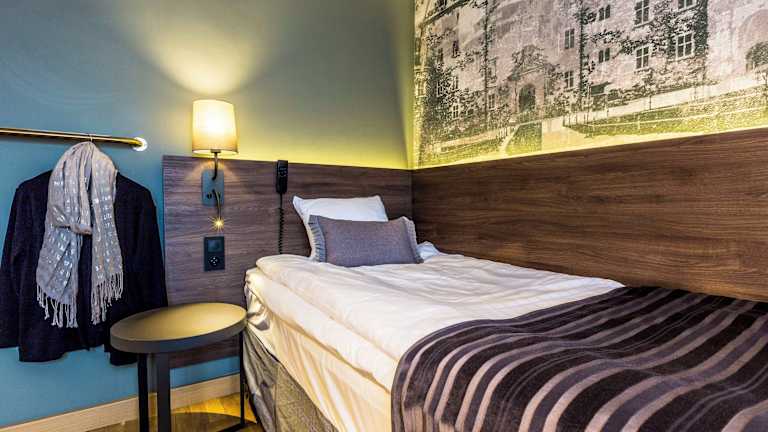 Die modernen Zimmer im Scandic Grand Hotel verfügen über Holzböden, Sat-TV und ein eigenes Badezimmer. Jedes Zimmer ist komfortabel eingerichtet und bietet den Gästen eine angenehme Atmosphäre für einen erholsamen Aufenthalt.