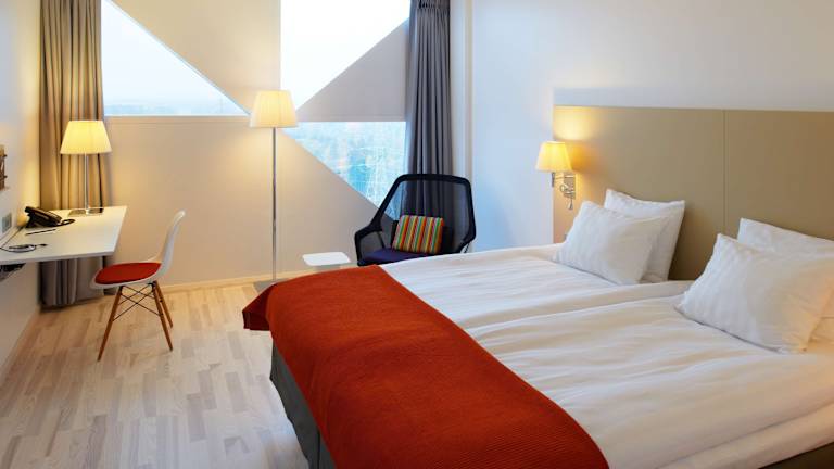 Das Hotel bietet 299 Nichtraucherzimmer mit stilvollem Design und modernen Annehmlichkeiten. Die Zimmer sind mit einem Flachbild-TV und Möbeln von Vitra, Montana und Flos ausgestattet. Ein kostenloser WLAN-Zugang ist in allen Zimmern verfügbar. Das Hotel verfügt auch über eine 24-Stunden-Rezeption, einen Aufzug und einen Supermarkt. Ein Spielzimmer und ein Fahrradverleih stehen den Gästen ebenfalls zur Verfügung.