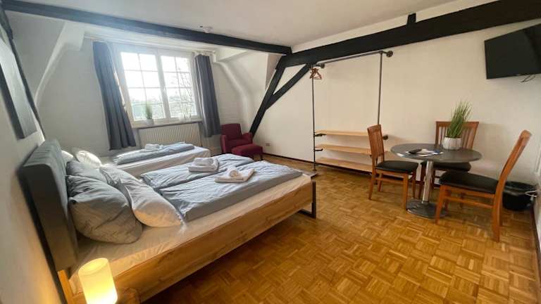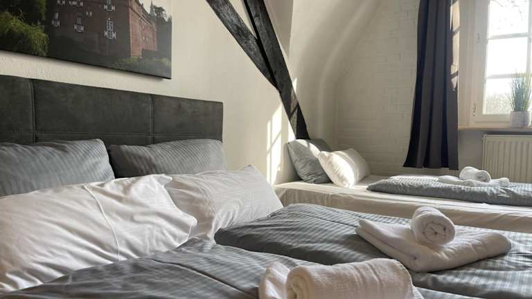 Das Hotel Schloss Walbeck befindet sich in der malerischen Stadt Walbeck. Die Umgebung bietet eine ruhige und natürliche Atmosphäre, ideal für entspannende Spaziergänge und Radtouren. In der Nähe des Hotels können Sie die schöne Landschaft genießen und verschiedene Freizeitaktivitäten wie Tennis und Tischtennis ausprobieren. Die Städte Düsseldorf und Oberhausen sind ebenfalls gut erreichbar und bieten eine Vielzahl von Sehenswürdigkeiten und Unterhaltungsmöglichkeiten. Der Flughafen Weeze ist nur eine kurze Autofahrt entfernt und ermöglicht eine bequeme Anreise.