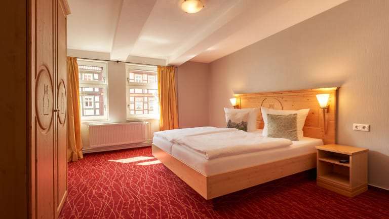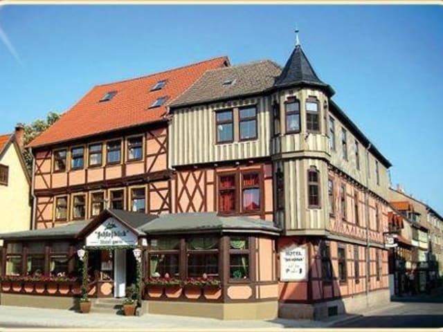 Das Hotel befindet sich mitten im Zentrum von Wernigerode. Wichtige Sehenswürdigkeiten wie das Schloss Wernigerode, das historische Rathaus und der Marktplatz sind in nur 5 Gehminuten erreichbar. Der nächste Flughafen ist etwa 60 km entfernt und der Bahnhof liegt nur ca. 10 m entfernt.
