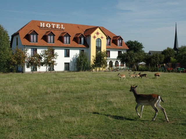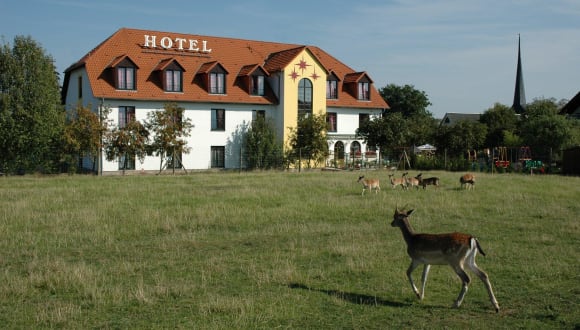 Das Hotel liegt in den Ortsteil Gelmeroda, 3 km südlich von Weimar`s Innenstadt entfernt in ruhiger ländlicher Atmophäre an der B85 und der Autobahnanbindung A4. Es bestehen sehr gute Busverbindungen und ein Gehweg/Radweg nach Weimar.