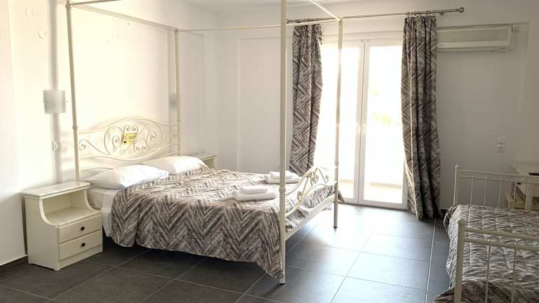 Die Zimmer im Hotel Sea View sind modern gestaltet und verfügen über handgefertigte Eisenbetten. Jedes Zimmer bietet einen eigenen Balkon mit herrlichem Ausblick auf die Ägäis, den Pool oder den Garten. Zur Ausstattung gehören ein LCD-TV, Klimaanlage und ein Haartrockner. Hier können Sie sich in einer romantischen Umgebung entspannen und den Komfort genießen, den das Hotel Sea View bietet.