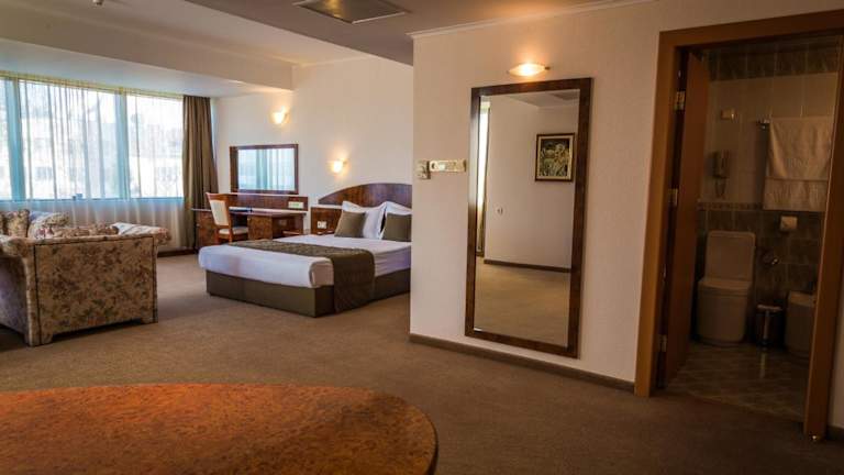 Die klimatisierten Zimmer im Hotel Sevlievo Plaza sind komfortabel und modern eingerichtet. Sie verfügen über kostenfreies WLAN und ein eigenes Badezimmer. Einige Zimmer bieten zudem einen herrlichen Blick auf die Stadt. Für zusätzlichen Komfort steht Ihnen ein Zimmerservice zur Verfügung.