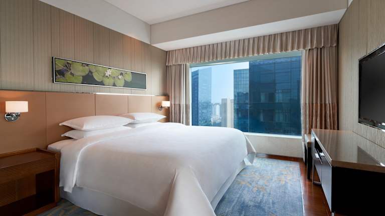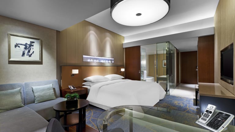 Die Zimmer im Sheraton Grand Beijing Dongcheng Hotel sind geräumig und bieten eine komfortable Unterkunft. Jedes Zimmer verfügt über eine iPod-Dockingstation, einen Safe und Kaffee- und Teezubehör. Sie können sich auf ein Marmorbad mit Badewanne und separater Dusche freuen. Zusätzliche Serviceleistungen wie ein Turndown-Service und ein Voicemail-Service stehen Ihnen ebenfalls zur Verfügung.