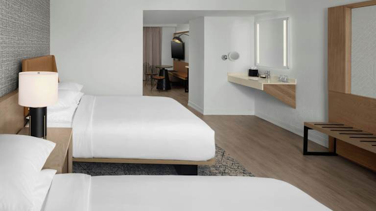 Die Suiten im Sheraton Suites Fort Lauderdale at Cypress Creek sind geräumig und bieten einen separaten Wohnbereich sowie Annehmlichkeiten wie eine Mikrowelle und einen kleinen Kühlschrank. Die Suiten mit 2 Zimmern bieten einen herrlichen Blick auf die Palmen und den Wasserfall im Atrium. Zur Ausstattung gehören auch 2 HD-TVs und kostenfreies WLAN.