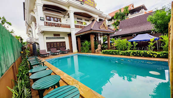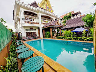Das Shining Angkor Boutique Hotel in Siem Reap bietet eine ideale Lage, nur 5 Autominuten von der berühmten Tempelanlage Angkor Wat und dem Alten Markt entfernt. Das Hotel besticht durch seinen Außenpool inmitten eines tropischen Gartens und bietet eine Vielzahl an Annehmlichkeiten für einen entspannten Aufenthalt. Die Zimmer sind im traditionellen kambodschanischen Stil eingerichtet und bieten einen herrlichen Blick auf die grüne Umgebung. Das Hotel bietet zudem einen kostenfreien Abholservice vom Flughafen oder Busbahnhof. Genießen Sie die ausgezeichnete Auswahl an lokalen und europäischen Gerichten im hoteleigenen Restaurant.