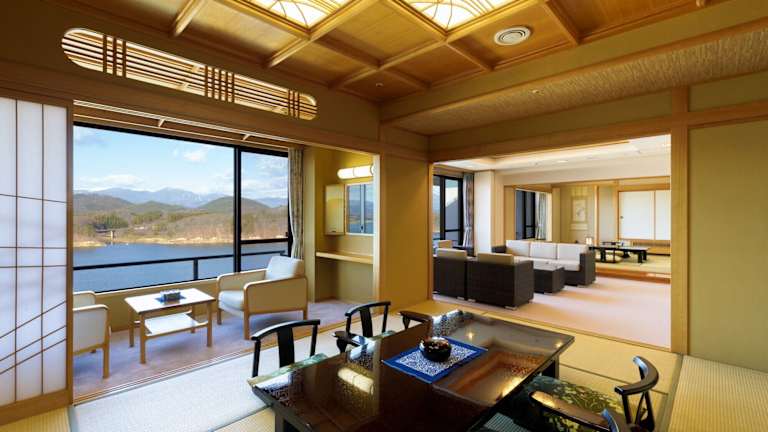 Das Hotel Shion in Morioka bietet seinen Gästen ein einzigartiges Erlebnis mit einem natürlichen Thermalbad und herrlichem Seeblick. Die Zimmer sind im traditionellen japanischen Stil mit Futonbetten oder im westlichen Stil mit normalen Betten gestaltet. Das Hotel bietet auch einen kostenlosen Abholservice vom Bahnhof Morioka Shinkansen. WLAN ist in den öffentlichen Bereichen kostenlos verfügbar. Entspannen Sie im öffentlichen Badebereich oder gönnen Sie sich eine wohltuende Massage im hoteleigenen Entspannungsalon. Das Hotel liegt in der Nähe des Sees Gosho und bietet eine malerische Umgebung. Genießen Sie ein köstliches japanisches Kaiseki-Abendessen und ein Frühstücksbuffet im Hotel.