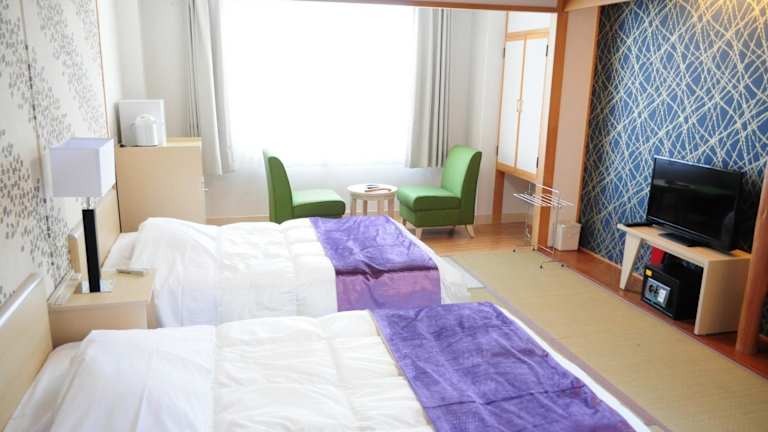 Die Zimmer im Hotel Shiretoko sind im japanischen Stil mit Tatami-Fußboden und traditionellem Futon-Bett eingerichtet, darüber hinaus gibt es auch mit Teppich ausgelegte Zimmer mit Twin-Betten. Alle Zimmer sind mit einem Flachbildfernseher, einem Kühlschrank und einem eigenen Badezimmer ausgestattet. Zudem werden grüner Tee und Yukata-Roben bereitgestellt.