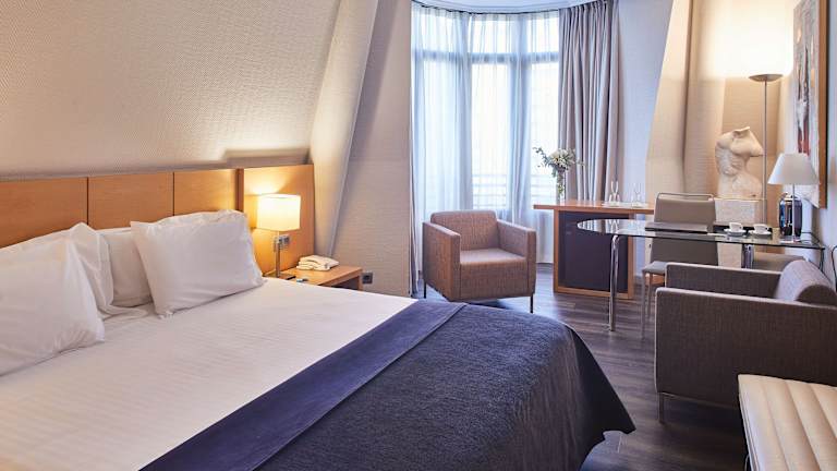 Die modernen Zimmer im Silken Ciudad de Vitoria sind komfortabel und stilvoll eingerichtet. Jedes Zimmer verfügt über einen Flachbild-TV und ein modernes Dekor. Das private Badezimmer ist mit einem Haartrockner und Pflegeprodukten ausgestattet.