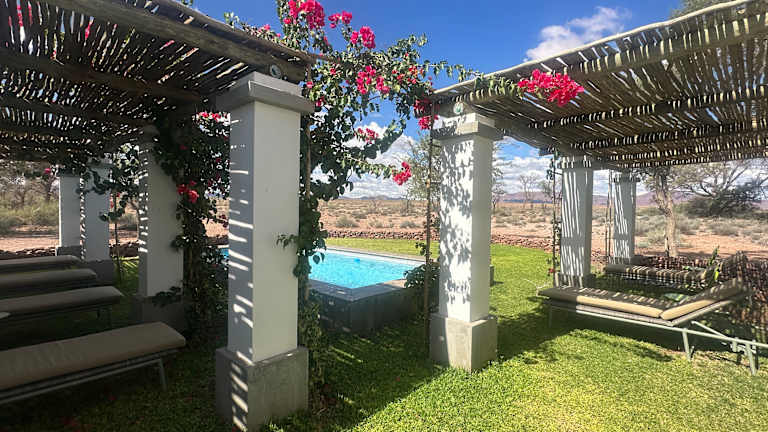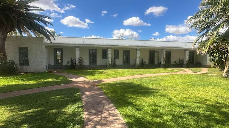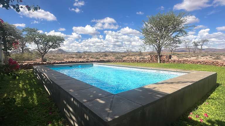 einfache Farm abseits einer Stadt. Von der Besitzerin (deutschstämmig in 3. Generation) erfährt man viel über früheres und heutiges Leben in Namibia. Früstück, Kaffee und Abendessen im Kreis der "Familie"(Gäste). Außerdem gibt es in der Nähe eine alte Kupfermine auf dem Grundstück, die man besuchen kann (3 km Wanderung einfach). Achtung: Mosquitospray nicht vergessen.