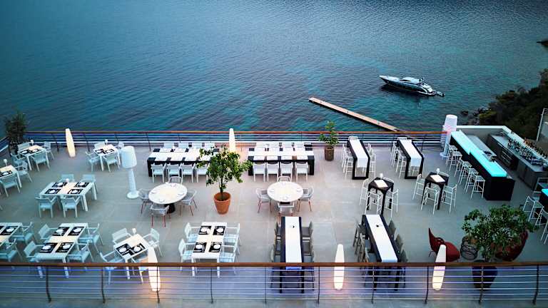 Das Sirene Blue Luxury Beach Resort bietet verschiedene Restaurants und Bars, in denen Sie köstliche Speisen und Getränke genießen können. Das Hauptrestaurant bietet ein Frühstücksbuffet mit Blick auf den Pool und den Strand. Im Taverna können Sie griechische Speisen probieren und die Bucht von Monastiri bewundern. Im Roof Garden Bar Restaurant können Sie mediterrane Küche und Livemusik genießen.