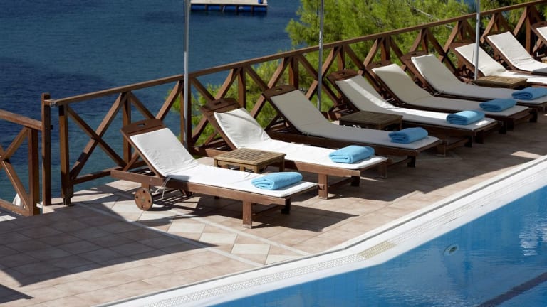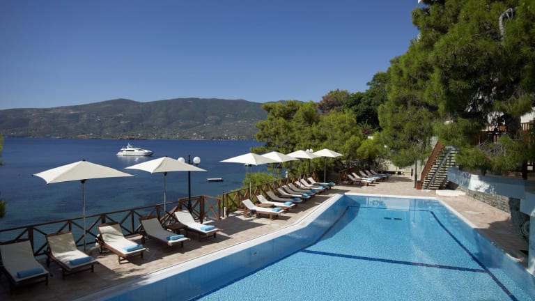 Das Sirene Blue Luxury Beach Resort ist ein traumhaftes Hotel, das von Pinien umgeben ist und einen eigenen Privatstrand bietet. Hier können Sie sich entspannen und die atemberaubende Aussicht auf den Saronischen Golf von Ihrem Balkon aus genießen. Das Hotel verfügt über erstklassige Einrichtungen wie Tennisplätze, ein Wellnesscenter und 2 Pools. Das Restaurant am Meer und die Strandbar bieten Ihnen eine große Auswahl an Speisen und Getränken. Das Resort bietet zudem eine Vielzahl von Freizeitaktivitäten wie Minigolf und Tauchen. Die Stadt Poros mit ihren neoklassizistischen Gebäuden und dem berühmten Uhrenturm ist nur eine kurze Fahrt entfernt.