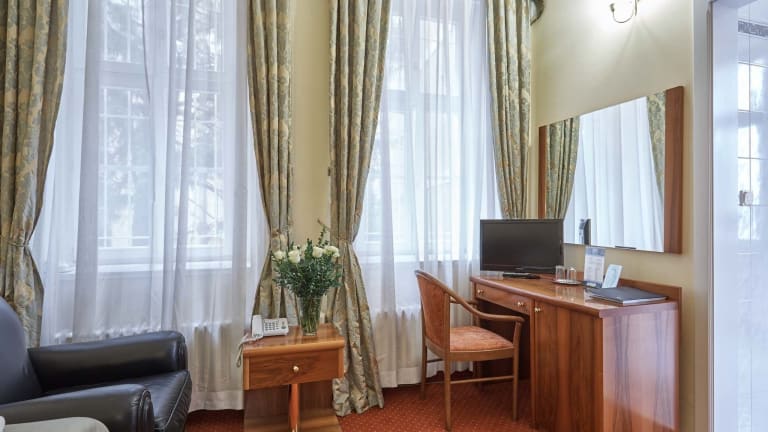 Im Herzen des Kurorts Karlsbad erwartet Sie das Hotel Sirius in einem charmanten historischen Gebäude. Hier können Sie entspannen, den Wellnessbereich genießen und köstliche tschechische und internationale Küche im Restaurant probieren. Die geschmackvoll eingerichteten Zimmer bieten Ihnen einen angenehmen Aufenthalt.
