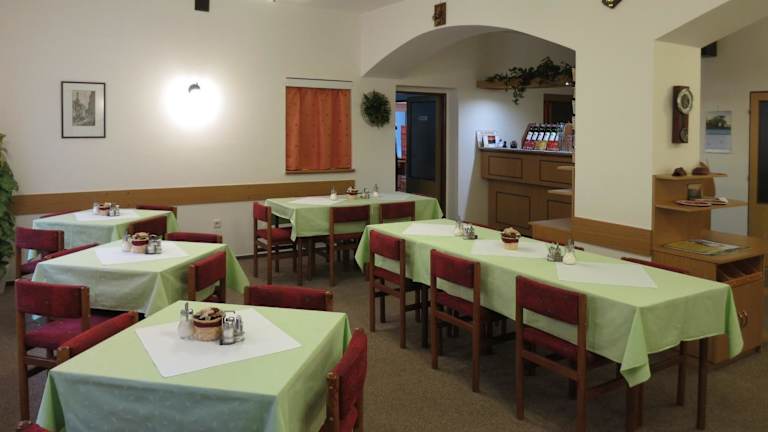 In der Pension Skály können Sie sich selbst verpflegen. Jedes Zimmer verfügt über eine Küchenzeile mit den nötigen Utensilien. Alternativ finden Sie in der Umgebung verschiedene Restaurants und Cafés, in denen Sie lokale Spezialitäten genießen können.