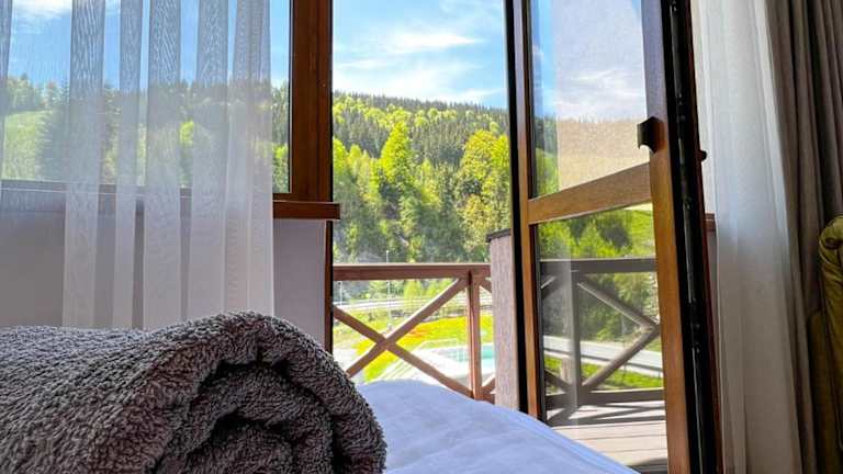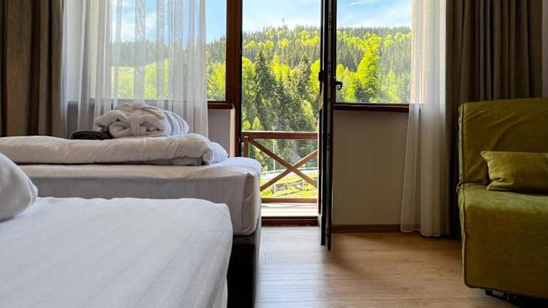 Das Hotel Skilandhouse in Bukovel bietet den perfekten Ausgangspunkt für einen Skiurlaub, da es nur 40 m vom nächsten Skilift entfernt liegt. Neben der günstigen Lage bietet das Hotel auch eine Vielzahl von Annehmlichkeiten wie ein Restaurant, kostenfreies WLAN und kostenlose Parkplätze. Die Zimmer sind komfortabel und mit einem eigenen Bad ausgestattet. Zusätzlich gibt es eine 24-Stunden-Rezeption, eine Bar, eine Gemeinschaftslounge, eine Skiaufbewahrung, eine Sauna und ein Spa. Ein Highlight des Hotels ist das Restaurant mit eigener Brauerei, in dem Sie eine große Auswahl an Craft-Bieren genießen können. Entspannen Sie sich im Whirlpool oder im Außenpool mit großer Terrasse. Ein Lebensmittelgeschäft befindet sich in unmittelbarer Nähe.