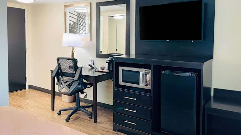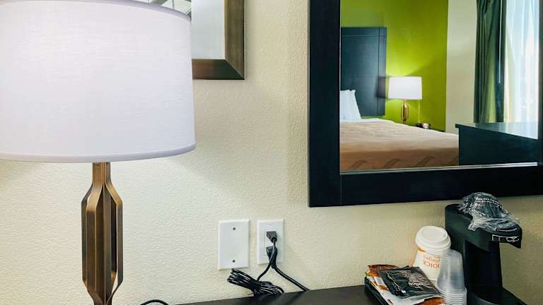 Die Zimmer im Quality Inn & Suites Lake Charles South sind komfortabel und bieten eine Vielzahl von Annehmlichkeiten. Jedes Zimmer ist mit Kirschholzmöbeln und warmen Farben eingerichtet und verfügt über eine Kaffeemaschine, einen Haartrockner und ein Bügeleisen/-brett. Die Suiten bieten zusätzliche Annehmlichkeiten wie eine Mikrowelle, einen Kühlschrank und ein Schlafsofa. Das Hotel bietet auch Executive Business Suiten und Suiten mit Whirlpool für besonderen Komfort.
