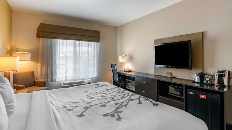 Die Zimmer im Sleep Inn & Suites Miles City bieten den Gästen Komfort und Bequemlichkeit. Sie sind gut ausgestattet mit einem Flachbild-Kabel-TV, einem Kühlschrank, einer Mikrowelle und einem Schreibtisch. Einige Zimmer verfügen sogar über eine Küche, Schlafsofas und eine Whirlpool-Badewanne, um den Aufenthalt noch angenehmer zu gestalten.