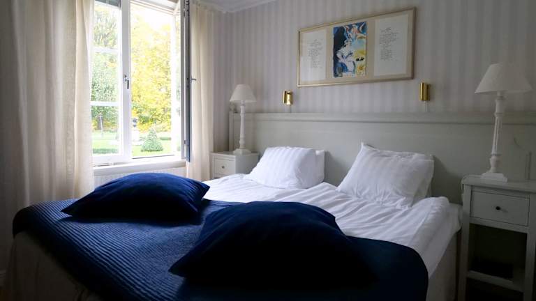 Die Zimmer im Södertuna Slott sind individuell eingerichtet und bieten eine charmante Mischung aus historischem Flair und modernem Komfort. Jedes Zimmer verfügt über einen Flachbild-TV, einen Schreibtisch und einen herrlichen Blick auf den See oder den englischen Garten.