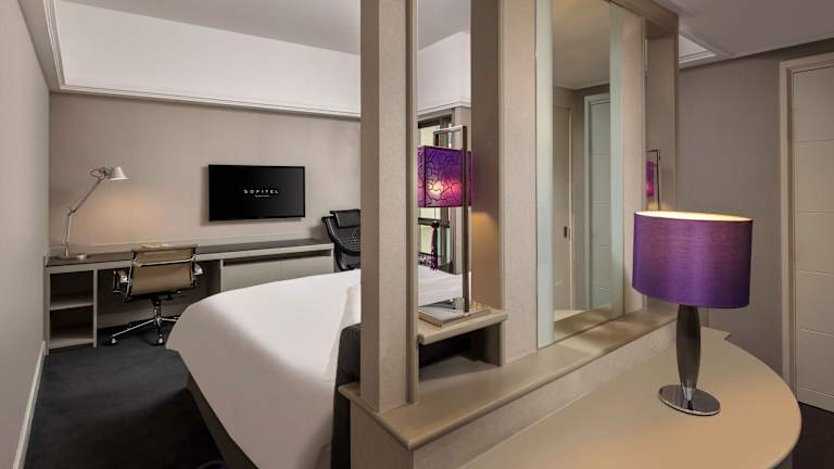 Die Zimmer im Sofitel Saigon Plaza sind im modernen Stil gestaltet und bieten einen atemberaubenden Blick auf die Stadt. Die Wohneinheiten sind komfortabel eingerichtet und verfügen über ein Marmorbad und kostenlosen Highspeed-Internetzugang. Der Zimmerservice steht Ihnen rund um die Uhr zur Verfügung, um Ihren Aufenthalt so angenehm wie möglich zu gestalten.