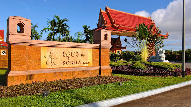 "Das Sokha Beach Resort liegt direkt am 1,5 km langen weißen Sandstrand von Sihanoukville in Süd-Kambodscha. Es ist nur wenige Fahrminuten vom Stadtzentrum entfernt und bietet einen einfachen Zugang zu Sehenswürdigkeiten wie dem traditionellen Markt ""Phsar Leu"" und der Pagode ""Wat Krom"". Der internationale Flughafen Sihanoukville ist etwa eine Stunde entfernt, während der internationale Flughafen Phnom Penh nach einer 4-stündigen Fahrt erreicht werden kann."