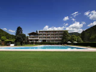 Das Hotel Solana del Ter liegt am Rande der Stadt Ripoll im Norden Kataloniens. Von hier aus genießen Sie einen beeindruckenden Blick auf die umliegenden Berge und haben eine gute Anbindung an das Skigebiet La Molina. Die Umgebung bietet zahlreiche Möglichkeiten für Aktivitäten im Freien, wie zum Beispiel Wandern, Radfahren und Skifahren. In Ripoll finden Sie regelmäßige Zugverbindungen nach La Molina und auch das schöne Núria-Tal ist nicht weit entfernt.