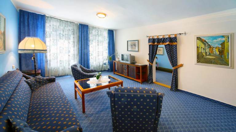 Das Hotel Solaster Garni befindet sich im Zentrum von Třebíč und ist nur wenige Schritte von der UNESCO-geschützten Kirche Saint Prokop und dem jüdischen Viertel entfernt. Diese zentrale Lage ermöglicht es den Gästen, die historischen und kulturellen Highlights der Stadt bequem zu erkunden. Die Region Vysocina bietet auch eine wunderschöne Landschaft, die Sie mit dem Fahrrad erkunden können. Es gibt einen Radweg, der Třebíč mit Jihlava und Raabs verbindet und Ihnen die Möglichkeit gibt, die Umgebung auf zwei Rädern zu erkunden.