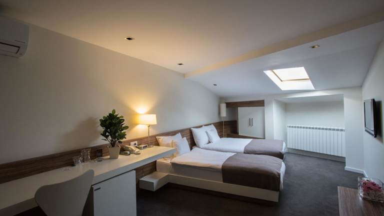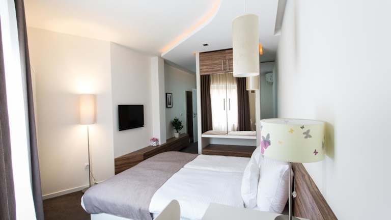 Das Hotel Sole befindet sich im Herzen von Niš und ist von zahlreichen Restaurants, Geschäften und dem Einkaufszentrum umgeben. Die zentrale Lage ermöglicht es Ihnen, die Stadt bequem zu erkunden und lokale Busse halten direkt vor der Unterkunft. Der Busbahnhof und der Hauptbahnhof sind nur 1,5 km entfernt und der Flughafen Niš ist in 3 km erreichbar.