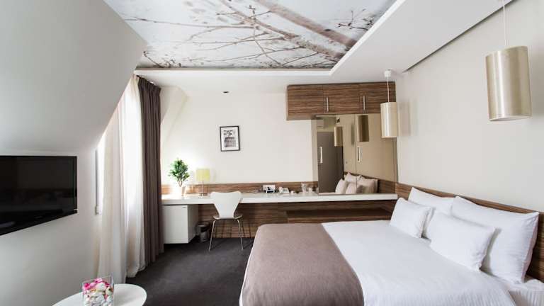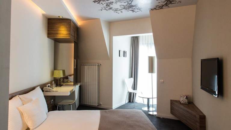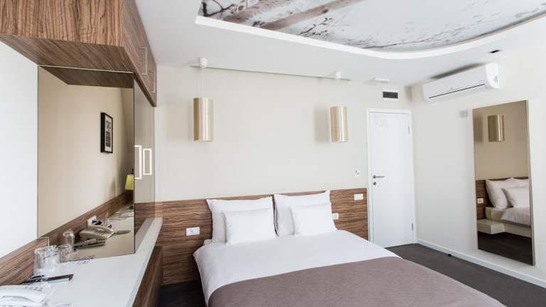 Das Hotel Sole in Niš ist eine charmante Unterkunft im Boutique-Stil im Herzen der Stadt. Die modernen Zimmer sind komfortabel ausgestattet und bieten kostenfreies WLAN. Genießen Sie ein leckeres Frühstück vom Buffet und entspannen Sie sich in der stilvollen Bar. Das Hotel bietet außerdem einen Parkplatz mit Überwachung und einen 24-Stunden-Zimmerservice. Die zentrale Lage ermöglicht es Ihnen, Restaurants, Einkaufsmöglichkeiten und öffentliche Verkehrsmittel bequem zu erreichen.