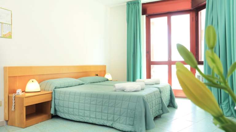 Das Hotel Soleado verfügt über 76 Zimmer, die schlicht, aber komfortabel eingerichtet sind. Die Zimmer sind klimatisiert und verfügen über helle Holzmöbel. Zur Ausstattung gehören ein Flachbild-TV, ein eigenes Bad mit Haartrockner und Pflegeprodukten sowie kostenfreies WLAN. Einige Zimmer bieten zudem einen Balkon mit Blick auf den Golf von Alghero.