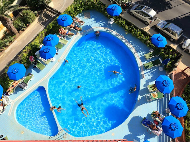 Das Hotel Soleado verfügt über einen Außenpool mit Sonnenterrasse, der zum Entspannen und Sonnenbaden einlädt. Es gibt auch einen Kinderpool, der speziell für die kleinen Gäste geeignet ist. Für Sportbegeisterte bietet das Hotel Tennisplätze und ein Solarium.