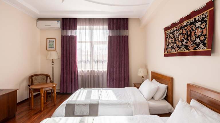 Das Soluxe Hotel in Bischkek bietet seinen Gästen einen angenehmen Aufenthalt mit komfortablen Zimmern und kostenfreiem WLAN. Das Hotel befindet sich in einer günstigen Lage, nur wenige Gehminuten von der Kirgisisch-Russischen Slawischen Universität entfernt. Morgens können die Gäste im Speisesaal des Hotels frühstücken und in der Umgebung gibt es eine Auswahl an Restaurants. Das Hotel bietet auch Tagungseinrichtungen und einen Fahrradverleih, um die Umgebung zu erkunden.