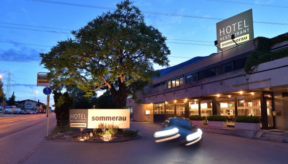 Das Restaurant Sommerau: Im stilvollen, lichtdurchfluteten Restaurant servieren wir saisongerechte und frische Speisen aus der Region und dem mediterranen Raum. Dazu empfehlen wir gerne einen regionalen Tropfen aus unserer vielfältigen Weinkarte. Unsere grosszügige Terrasse lädt zum Verweilen ein - ganz gleich, ob zum Businesslunch oder zum gemütlichen Abendessen - wir heissen Sie herzlich willkommen.