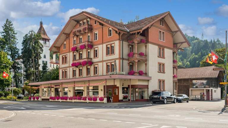 Das Hotel Sonne Interlaken-Matten ist ein traditionelles Schweizer Chalet-Hotel, das nur einen kurzen Spaziergang vom Zentrum von Interlaken entfernt liegt. Mit gemütlichen Zimmern, kostenfreiem WLAN und Parkplätzen sowie einem herzhaften Frühstücksbuffet bietet das Hotel seinen Gästen eine angenehme Unterkunft. Nutzen Sie auch die Interlaken Card, um kostenlos die öffentlichen Verkehrsmittel zu nutzen und von verschiedenen Ermäßigungen zu profitieren.
