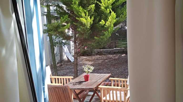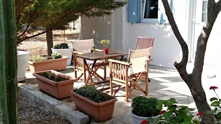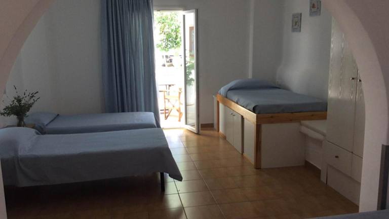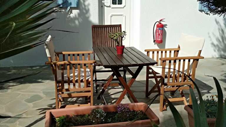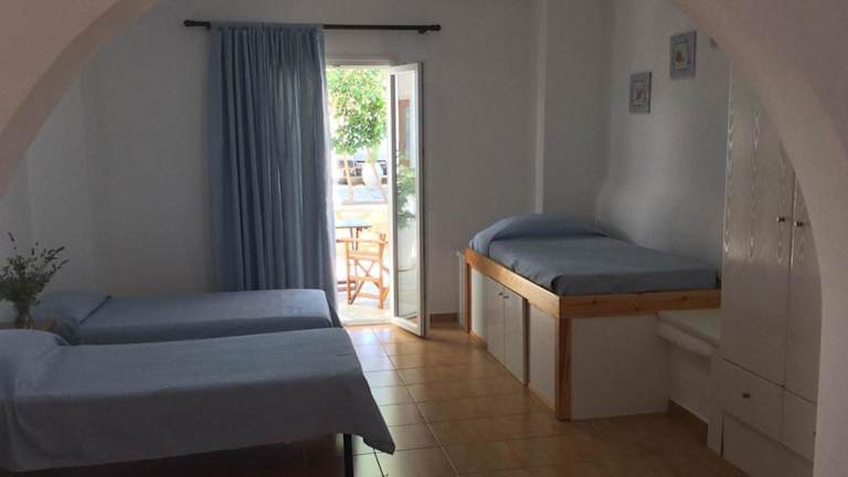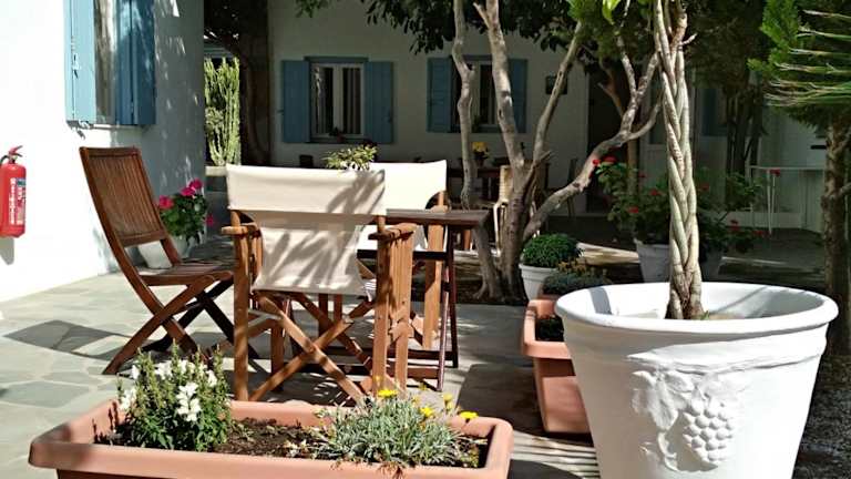 kleines Hotel 10 Minuten Laufweg zur Altstadt von Mykonos Stadt. Obwohl ohne Frühstück gebucht, gab es morgens Kaffee oder Tee und Plätzchen. Sauberere Anlage mit freundlichem Personal. Wie alles in Mykonos stimmt das Preis/Leistungsverhältnis nicht. Linienbusse am Eingang zur Altstadt zur den Stränden, außer zum Superparadies Beach privater Bus für 4 Euro p.P..