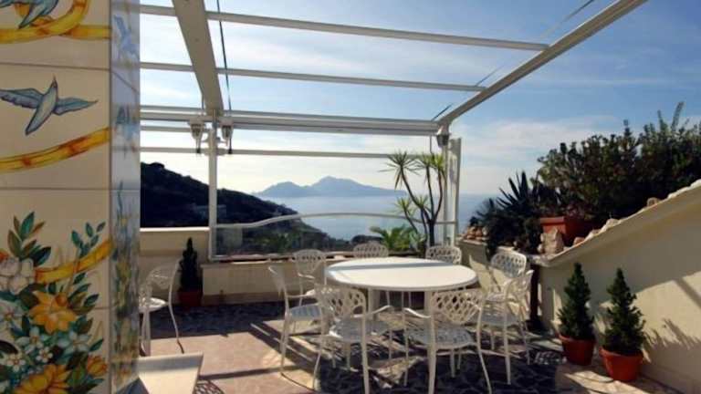 Das Hotel liegt in einer ruhigen ländlichen Gegend zwischen Massa Lubrense und Sorrento. Die Bushaltestelle nach Sorrento befindet sich direkt vor der Tür, so dass Sie bequem die Umgebung erkunden können. Die Lage des Hotels bietet Ihnen einen herrlichen Blick auf die Bucht von Neapel und die Insel Capri.