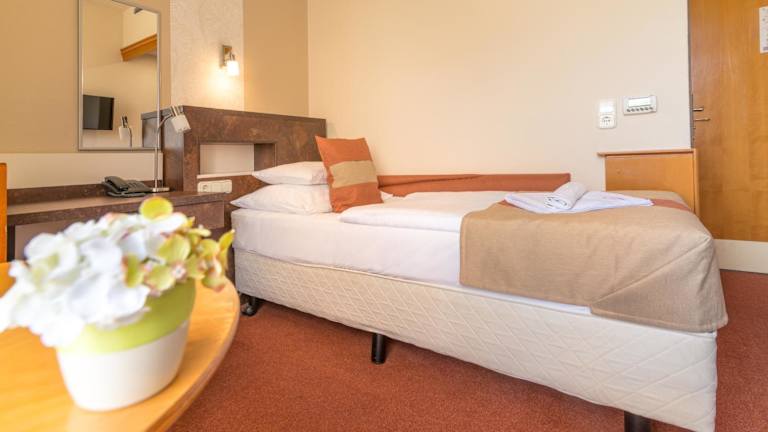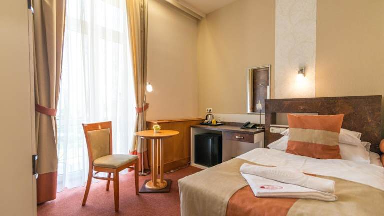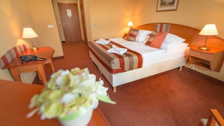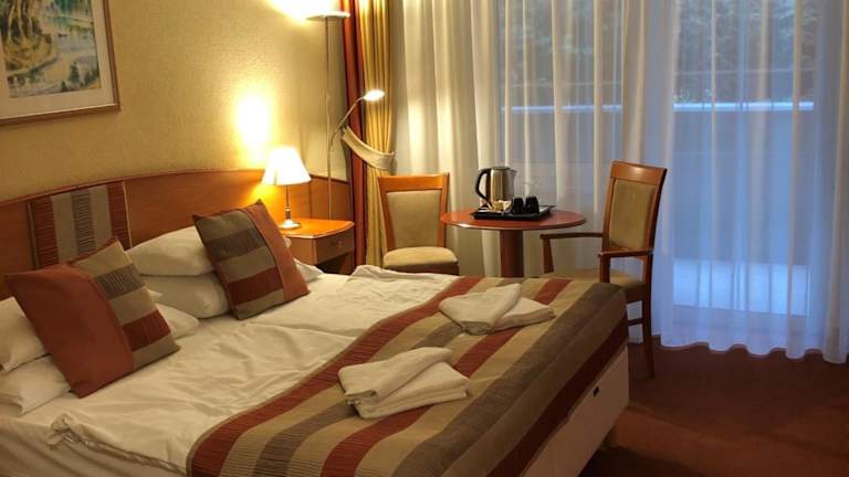 Die modernen, klimatisierten Zimmer im Hotel Spa Hévíz bieten Ihnen einen komfortablen Aufenthalt. Jedes Zimmer verfügt über Kabel-TV und ein Badezimmer mit Haartrockner. Genießen Sie den Blick auf den Park oder den See von Ihrem eigenen Balkon.