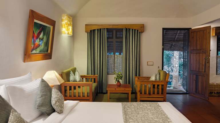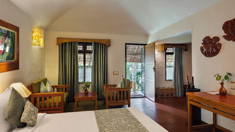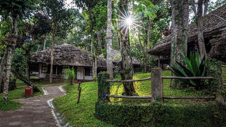 Das Spice Village in Thekkady ist ein einzigartiges Boutique-Hotel, das einem traditionellen Stammesdorf ähnelt. Die strohgedeckten Cottages bieten den Gästen einen authentischen Aufenthalt und eine entspannte Atmosphäre. Das Resort verfügt über einen Außenpool, einen Tennisplatz und erfahrene Ayurveda-Ärzte. Die Cottages im Landhausstil bieten eine gemütliche Veranda mit Blick auf Obstbäume und Kräuterbetten. Das Restaurant serviert köstliche Kerala-Küche, die von den lokalen Gewürzen aromatisiert wird.