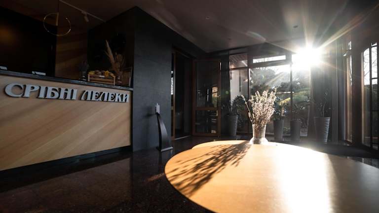 Im Restaurant Sribni Leleky können die Gäste europäische Küche genießen. Das Restaurant bietet eine vielfältige Auswahl an Gerichten, die den Gaumen verwöhnen und für jeden Geschmack etwas bieten. Das Hotel verfügt auch über ein Café, das eine weitere Option für entspannte Mahlzeiten oder einen Kaffee zwischendurch bietet.