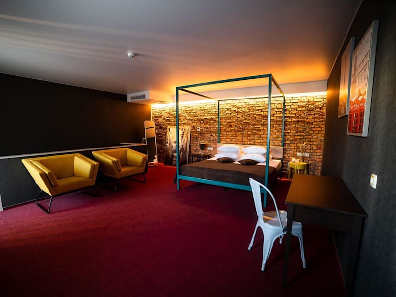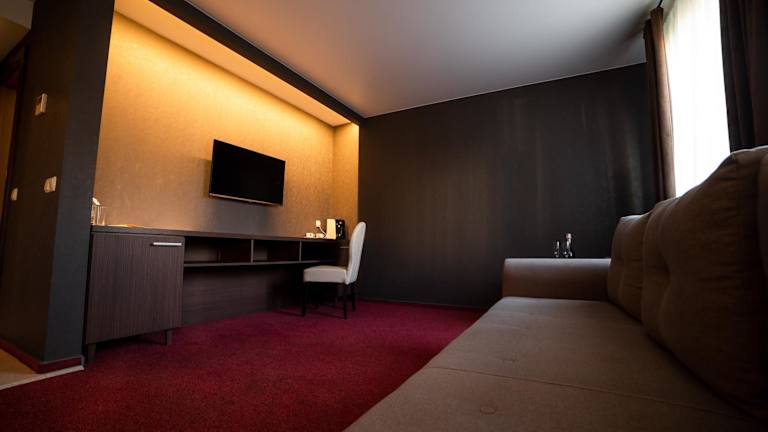 Das Sribni Leleky Hotel & Spa in Luzk bietet seinen Gästen eine ideale Lage, nur 2 km vom Schloss Lubart und dem Stadtzentrum entfernt. Das Hotel zeichnet sich durch kostenfreies WLAN, Parkplätze und eine Ladestation für Elektrofahrzeuge aus. Die Zimmer sind komfortabel eingerichtet und verfügen über moderne Annehmlichkeiten wie Klimaanlage, Flachbild-TV, Safe und Schreibtisch. Im hoteleigenen Restaurant können Sie europäische Küche genießen, während das Café eine weitere Option für entspannte Mahlzeiten bietet. Das Spa des Hotels lädt mit einem Pool, einer traditionellen Sauna, einem Hamam und Cottages mit Whirlpools im Freien zum Entspannen ein. Bitte beachten Sie, dass diese Leistungen separat und nach vorheriger Reservierung bezahlt werden müssen. Die Bushaltestelle Chornovola Street befindet sich nur 100 m vom Hotel entfernt, und der Bahnhof Lutsk ist in einem 15-minütigen Spaziergang erreichbar.