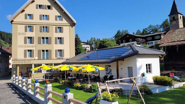 Das Hotel Stätzerhorn in Parpan bietet Gästen eine gemütliche Unterkunft inmitten des Wander- und Skigebiets. Mit einer traditionellen Küche und komfortablen Zimmern ist das Hotel der ideale Ausgangspunkt für Aktivitäten in der Natur.