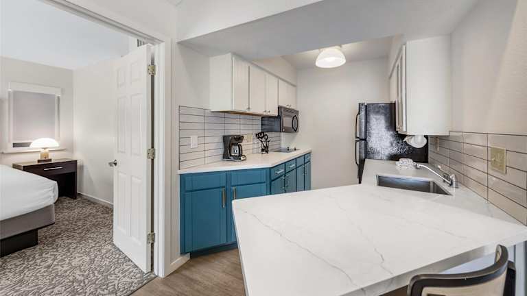 Die Suiten sind mit einer Klimaanlage und Heizung ausgestattet. Jede Suite verfügt über ein Doppelbett, ein Sofabett, einen Schreibtisch sowie eine voll ausgestattete Küchenzeile mit Kühlschrank, Herd, Mikrowelle, Geschirrspüler und Tee-/Kaffeemaschine. Des Weiteren sind ein Fernseher und ein DVD-Player vorhanden. Im Badezimmer gibt es eine Dusche und einen Haartrockner. Rollstuhlgerechte Zimmer sind ebenfalls verfügbar.