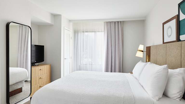 Die Suiten im Staybridge Suites Peoria Downtown sind geräumig und verfügen über eine voll ausgestattete Küche, in der Sie Ihre eigenen Mahlzeiten zubereiten können. Kostenloses WLAN und Kabel-TV stehen ebenfalls zur Verfügung. Jede Suite verfügt über einen separaten Wohn- und Essbereich, der zusätzlichen Komfort bietet.